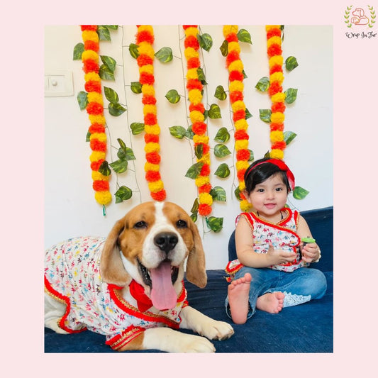 Elephant Print Angarkha Dog Kurta - Traditional Indian Dog Ethnic Wear Dress