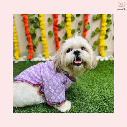 Purple & White Block Print Dog Angarkha Kurta - Indian Dog Ethnic Wear