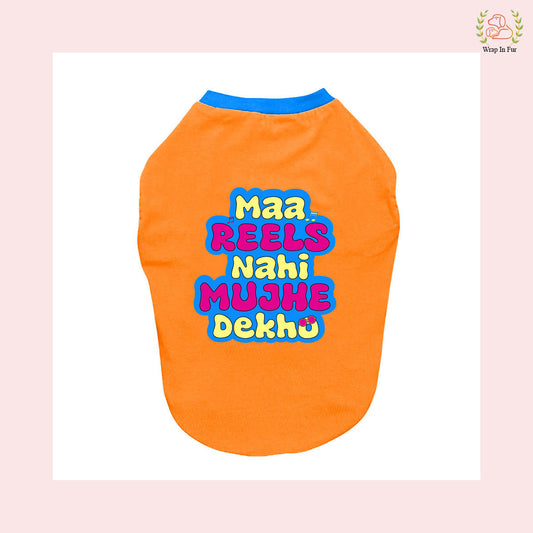 Funny Dog T-Shirt – Maa Reels Nahi Mujhe Dekho Dog T-Shirt