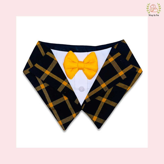 Vibrant Yellow Plaid Tuxedo Style Dog Bandana - Party Accessory