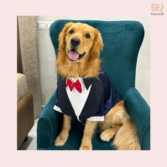 Navy Blue Sequin Dog Tuxedo Jacket - Glamorous Wedding Formal Suit