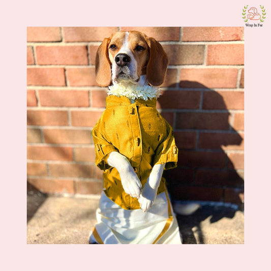 Yellow Nawab Dog Kurta Vest - Premium Embroidered Indian Dog Ethnic Wear