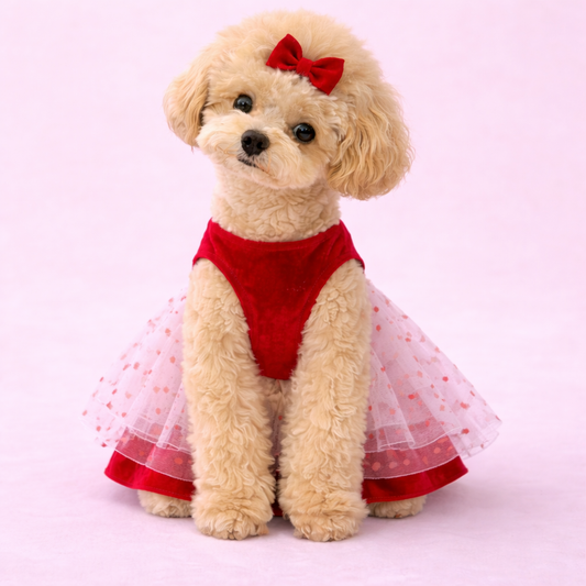 Luxury Red Tulle Dog Dress - Big Sequin Bow Wedding Outfit